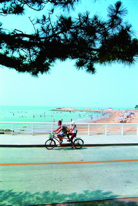 租一辆多人骑的自行车和爱人、朋友一起在美丽的海滨公路上兜风,穿梭于南、北戴河之间,满目的碧海、金沙、俊男、美女,甚是惬意!
